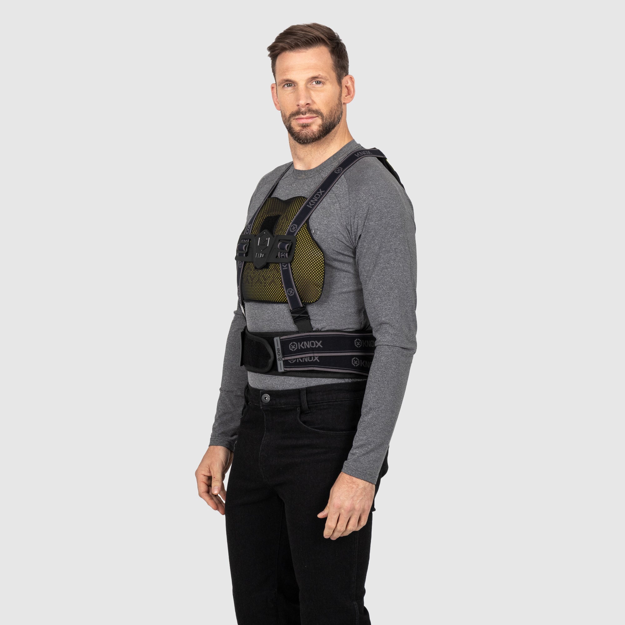 Knox chest protection is courtesy of a low-profile Micro-Lock chest protector, that has a special adjustable fitting system, allowing it to work with all styles of Knox strap on back protectors.