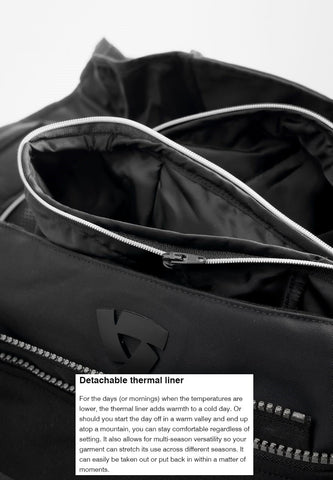 Adding to the versatility of the waterproof detachable liner, it comes with a short connection zipper, allowing you to securely fasten it to your riding trousers (or jeans via the Safeway 2 belts), when possible.